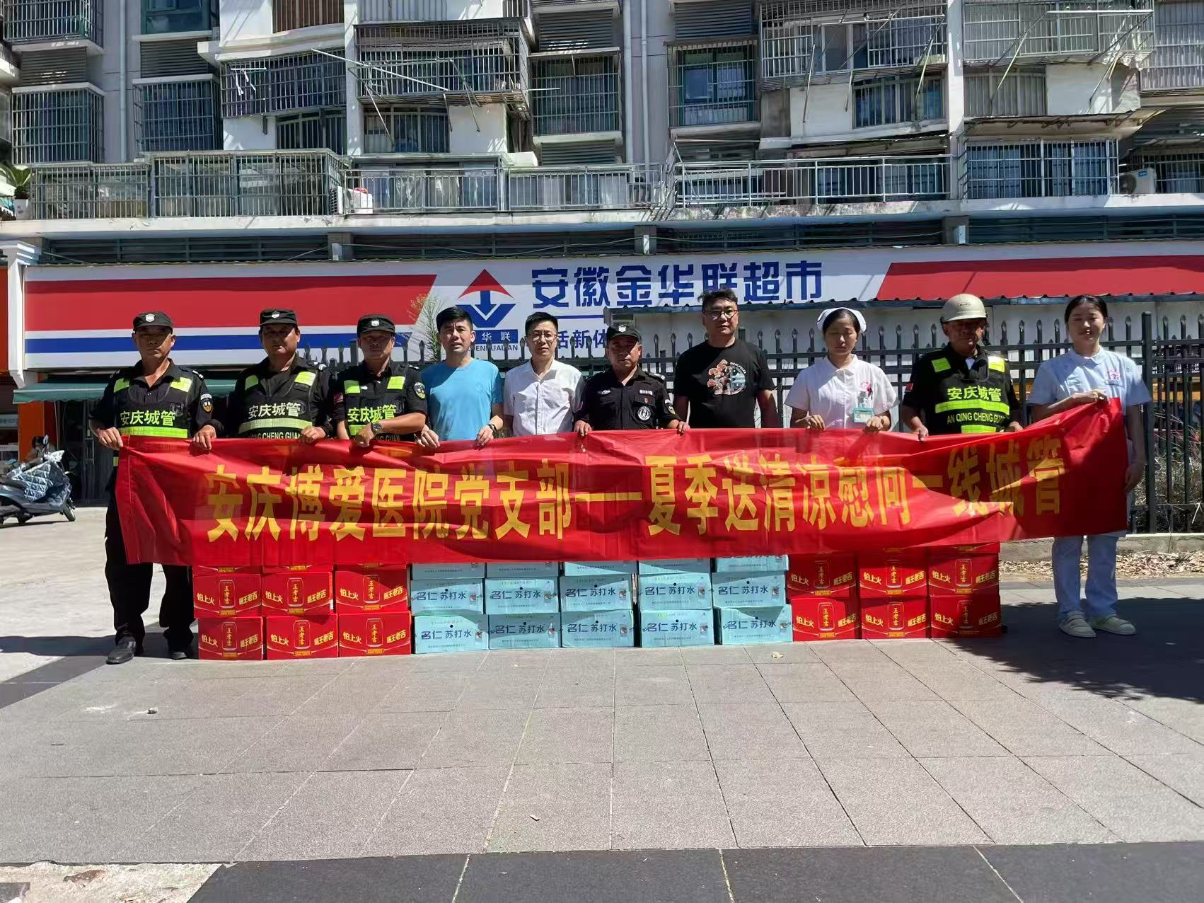一份份慰问的物品、一句句关心的话语,让身处一线的工作人员在炎炎夏日感受到了物质、精神的“双份清凉”。入夏以来,安庆博爱医院持续开展夏日送清凉慰问活动,让身处一线的工作人员感受到沁人清凉。今后我院将继续向奋战一线的同志们学习,坚持人民至上、生命至上,在新征程上为社会安全发展和人民群众生命健康作出更大贡献。