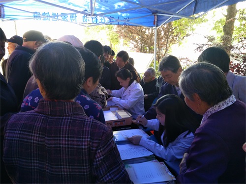 无论天气炎热还是阴雨蒙蒙,体检人员每天早上7点准时出发,7点半准时来到体检地点,抽血、量血压、听诊问诊、B超、心电图,各项检查有序进行。有时忙到下午1点多,大家顾不上吃饭,保证当天体检任务完成。